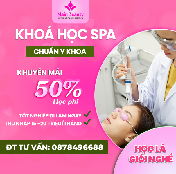 MainBeauty Là nơi dạy nghề spa hàng đầu tại Việt Mam, đăng ký học Spa chuyên nghiệp tại MainBeauty học viên học từ cơ bản đến nâng cao, học thực hành trực tiếp trên máy công nghệ cao, có các chuyên gia về ngành gia liễu trực tiếp đào tạo. Đảm bảo học viên tốt nghiệp có tay nghề vững vàng, giỏi chuyên môn, chắm sóc da đúng cách và đúng phương pháp.
